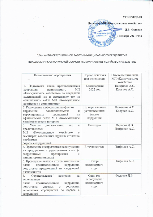 Приказ МП Коммунальное хозяйство от 30.12.2021 №196